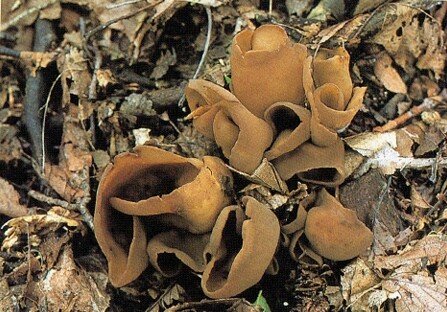 一見チャワンタケ属菌に見えるが、片側が底まで裂けて巻き込むような椀形、基部は細まり地中に入るのが特徴