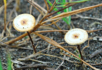 高橋郁雄先生からご提供。小型菌「偽蓬莱茸」和名。海の浜辺、砂浜のイネ科の枯れた植物からも発生する