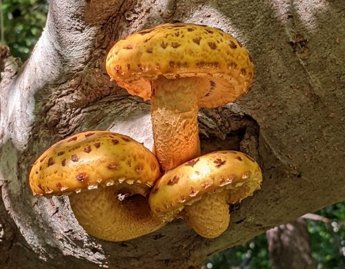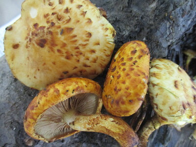中型~大型菌「滑杉茸擬」和名通り、傘と柄に鱗片があり、ヌメリスギタケに似ているが、柄にぬめりが無い