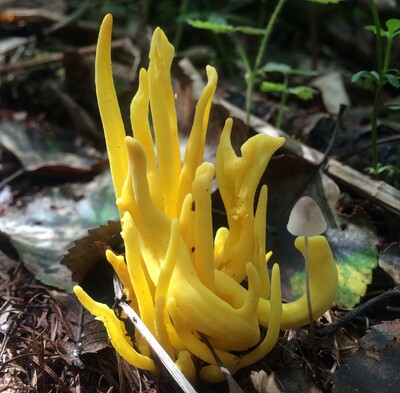 小型の担子菌「花弁茸」和名通り、花びらに似た形で白い柄以外は鮮黄色をしており、幸福な色が最大の特徴。