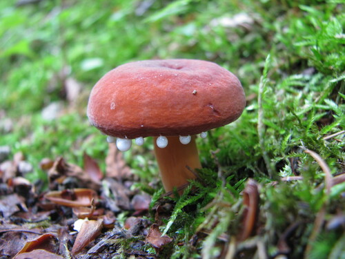中型~大型菌「乳茸」名前の通り、子実体は傷つくと粘り気のある白色乳液が大量に出てくるのが最大の特徴。