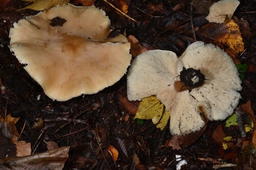 肉:傘は白色でやや薄い。柄は粘土黄褐色で部分的に錆褐色。味は石鹼の様で石鹼臭~草臭がある。