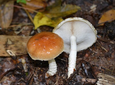 傘:直径5~8cm程の中型で饅頭形~平らに開く。表面は粘性で赤褐色~茶褐色、周縁に綿毛状の小鱗片を点在し、淡色となることが多い。