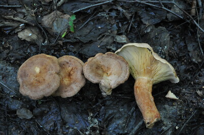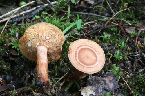 小型~中型菌「丁字乳茸」の和名。乾燥すると丁字のような臭いがし、白色乳液はクリーム色に変色する。