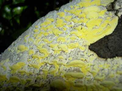 傘裏の管孔の胞子が熟して黄色くなったのを円山公園で撮影。