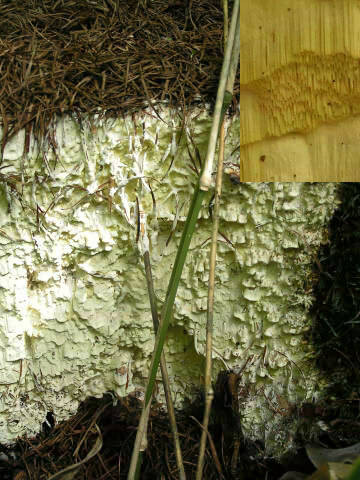 中標津町の佐藤康彦氏からのご提供。裸子植物に発生したチョークアナタケ。