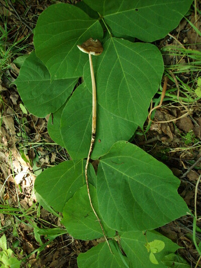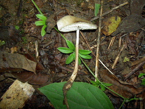 小型~中型菌「杖茸」柄が細く長く、さらに地中にも根のように伸びることからの命名。