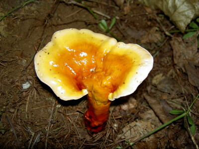 傘表面は初め白色~黄色となり、若い個体なので、ニスを塗ったようにピカピカ!!