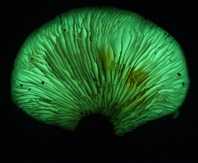 子実体の傘裏のヒダには、発光成分を有するのが最大の特徴。