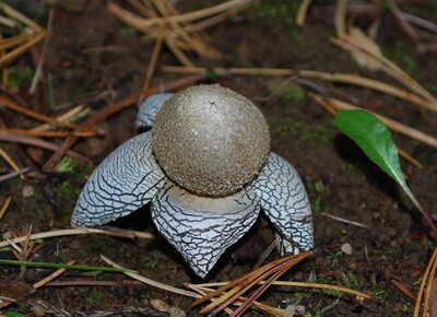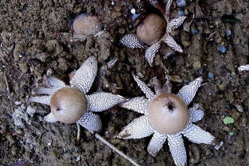 成菌になると皮質の厚い外皮が、頂部から6~10数片に裂けて星形に開く。