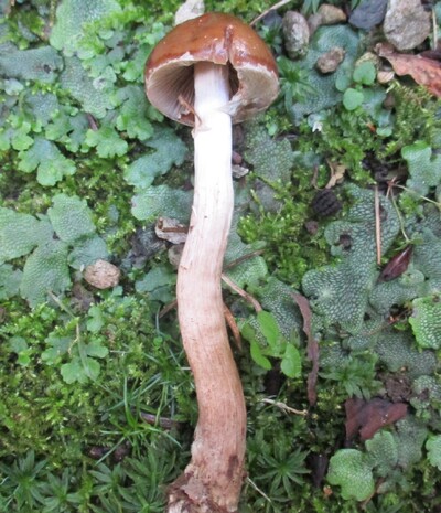「土滑子」名称からナメコに似てるが地面から発生し、傘にぬめりがあり、柄のつば上面に条線があるのが特徴