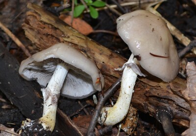 傘裏面:ヒダ状で帯紫灰色~紫黒色、並び方は密で柄に直生~垂生する。