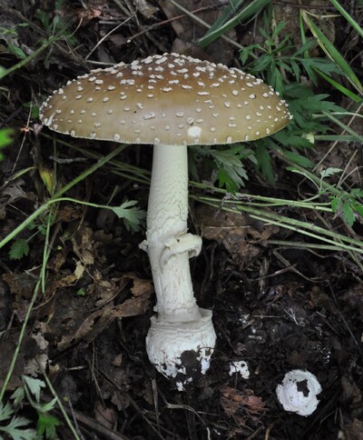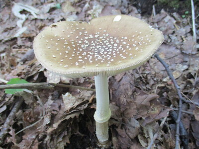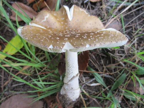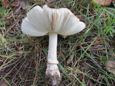 小型~中型菌「天狗茸騙」名前通り、テングタケに似ており騙されやすいが、つば縁が茶色で柄の下に付く。