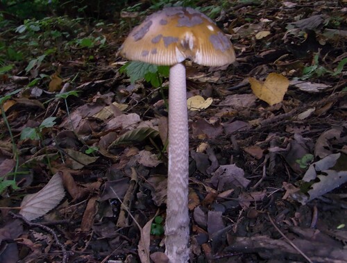 中型菌「天狗鶴茸」柄につばが無いから和名に鶴が付く、傘の大きさに比べ柄が長くツルタケのように見える
