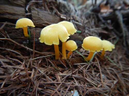 小型菌「橙黄茸」池田仮称ですが、漢字名通り、全体が橙黄色を帯びていて、傘表面が微毛状なのが特徴。