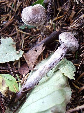 中標津町の佐藤康彦氏からのご提供「白髪鍔風船茸」幼時に傘と柄が白色絹糸状繊維に覆われるのが最大の特徴