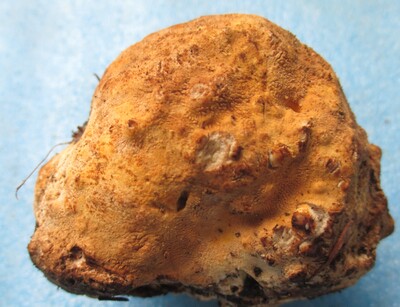 「臭大玉湿地」和名通り臭いが強く、大型玉状の塊から多数発生、コガネタケに寄生して菌糸塊を作るのが特徴