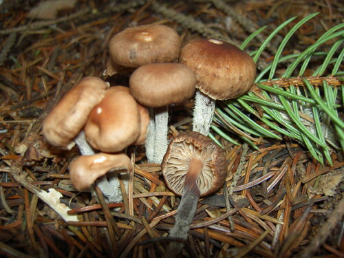 小型菌「臭松落葉茸」独特のニンニク臭があり、円山公園内のマツ類の落葉堆積地に群生していた稀なきのこ。