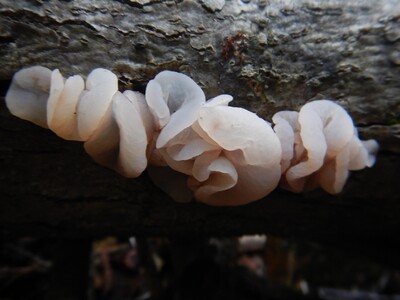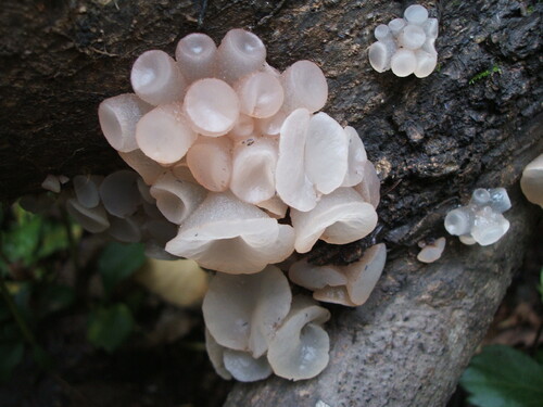 小型の子嚢菌類「膠茶椀茸」和名通り、ゼラチン質~ニカワ質で茶碗形、淡紫色で半透明なのが特徴。