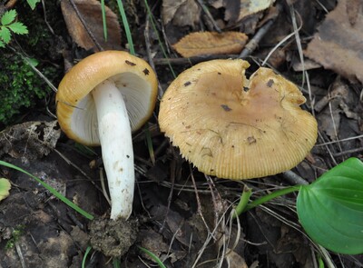 高橋郁雄先生からのご提供「偽臭初」和名。クサハツよりも傘色が淡色で柄にしわ状縦線が密にあるのが特徴