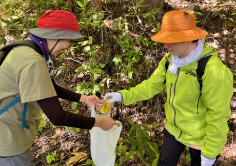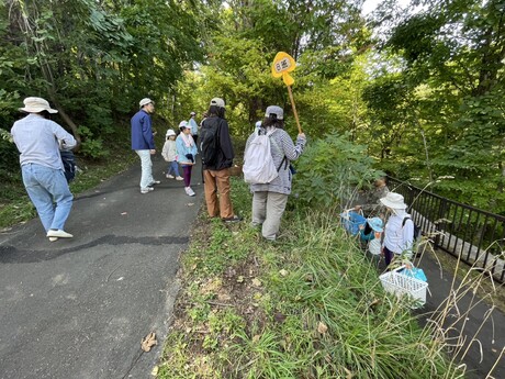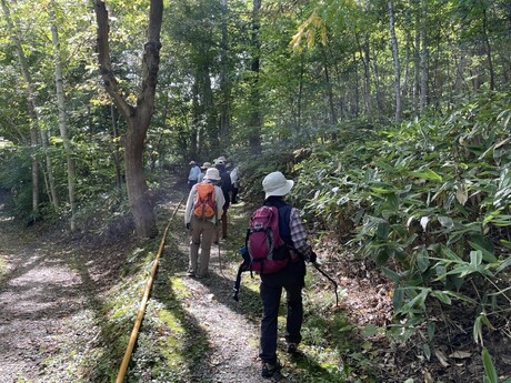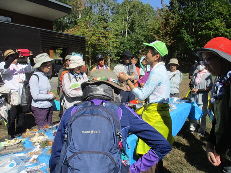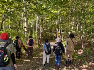 荻原班長の元、観察順路は、森の家を出発してからすぐにキノコの群生を発見し、2種類のキノコを見つけることができました。その後、藻岩山山頂への案内サインから300m程歩いてキノコを探してから森の家へ戻る約1時間の行程でした。