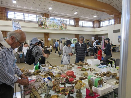 秋晴れのもとサッポロさとらんど交流館に和田、松原が8時に集合して、キノコの展示作業をしました。会場の「さとらんど交流館」には森林育成に関わる団体や木育に力を入れる団体が活動成果の展示や木材を加工してフォトスタンドやコースターを作る製作体験のコーナーもあり、大勢の家族連れが来場、木の香りの漂う会場で秋の一日を楽しんでいました。