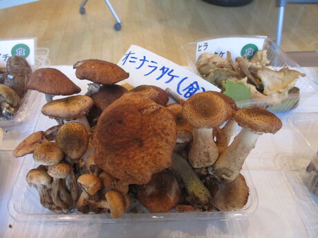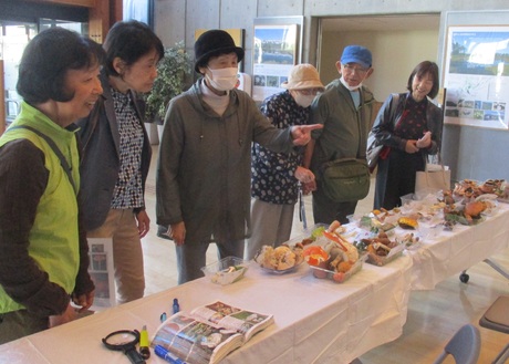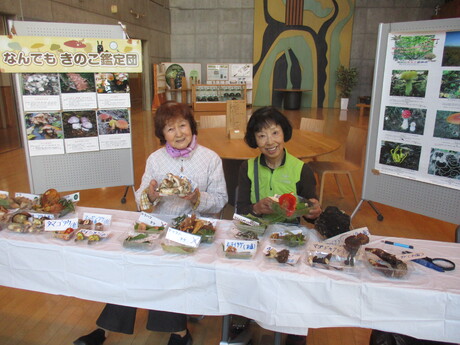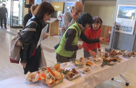 一般市民や地域の方たちが次から次へと来場して下さり、展示きのこが少なかったですが、傘が真っ赤なベニテングタケを指さして「赤いペンキを塗ったようだね!!」の言葉に爆笑したり、きのこ談義が和やかに行なわれていて終始お客様が途切れることが無く、賑やかでした。ご来場者の中には、ご協力下さいましたOさんのご友人、山登りの仲間、ご近所の子供連れのご夫婦、家族など。また、北海道立衛星研究所の食品安全グループの研究職員さんが2名お出で下さいましたので毒きのこのシロトマヤタケなど、研究に使用する毒きのこ3種類程差し上げました。また、私の知人が女満別町からお出でくださいました。きのこ同定:中田洋子。協力者:尾方美智代。(中田洋子 記)