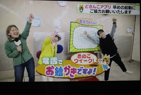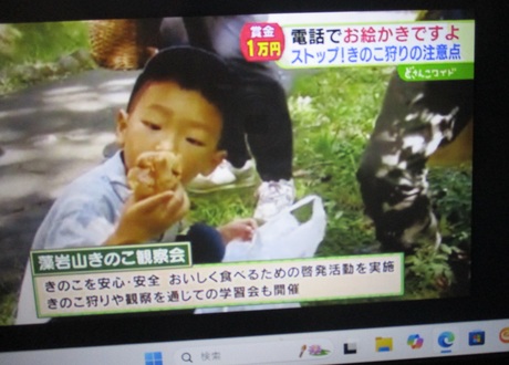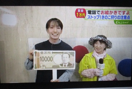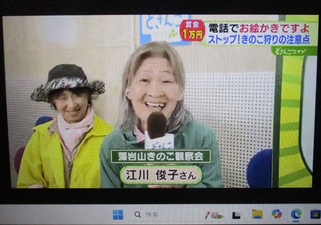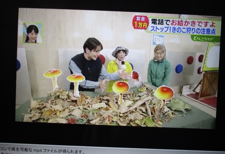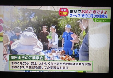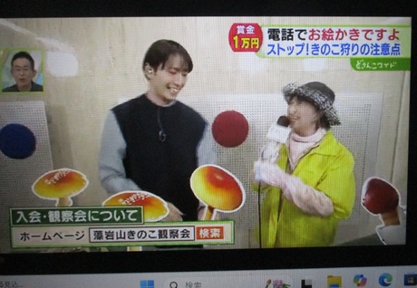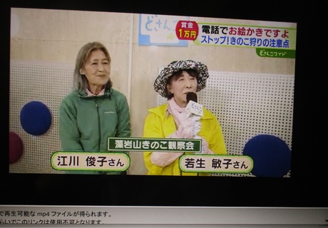 若生敏子さんは、当団体の黄色いジャンパーを身に着けてベニテングタケとタマゴタケの解説がとても上手で良かったです。江川俊子さんのお絵描きは上手で分かり易くてとても良かったです。最後の「点々・・・・」のペンの運びが「糠漬け」と分かっようで、帯広在住者が正解して1万円をゲッとし、江川さんが飛び跳ねて喜んでおりました。若生さんも江川さんも落ち着いていて、初めてのテレビ出演とは思われないほど、素晴らしく良かったです。お二人りのご尽力は当団体のPRになりました。心からお礼を申し上げます。